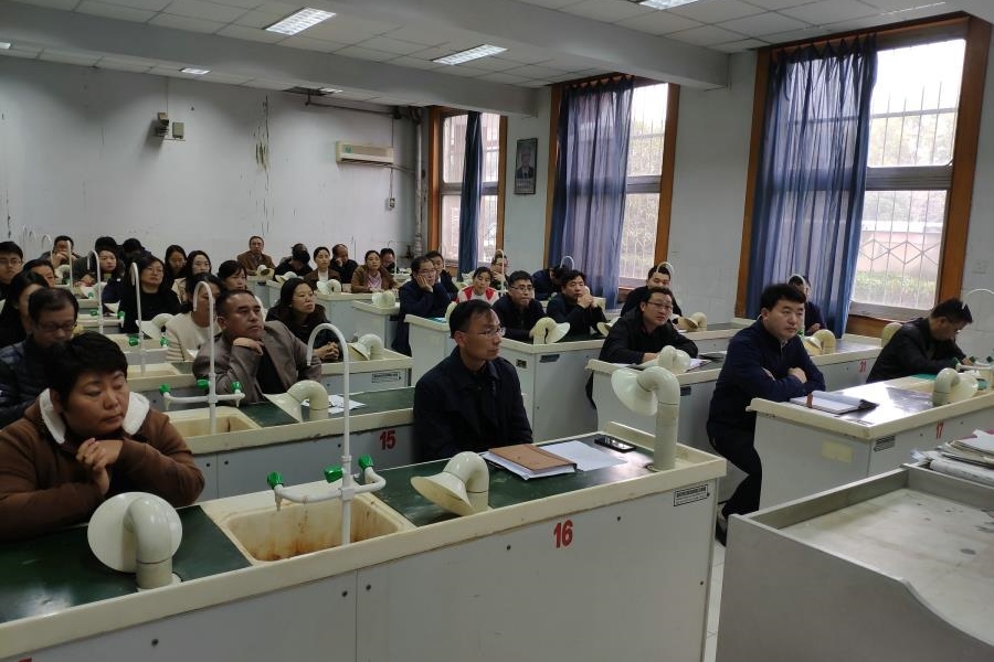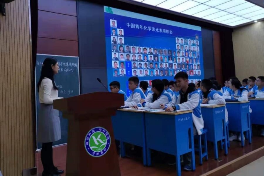 2019年11月5日下午2:30,开封高中化学组东西校区大教研在东校区东报告厅进行。本次教研活动由教研组长郭宏强老师主持,化学组全体教师参加,顾伯宇校长、乔国颖副校长及开封市基础教研室高中化学教研员周继敏老师到会指导,兄弟学校部分领导、化学老师参加观摩。 活动第一环节,王文娟老师进行公开课展示,她以《原子结构与元素周期表》为题,以必修教材相关内容为基础,结合国际化学元素周期表年活动巧妙