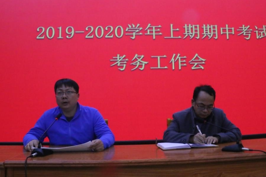 2019年10月29日星期二下午4:15开封高中东校区召开了2019-2020学年上期期中考试考务会。高一、高二年级全体教师参会,参与此次会议的领导有教学主管校长乔国颖、信息与资源管理处主任周金陈。会议开始,周金陈安排期中考试相关工作,并从监考和阅卷等环节对所有教师提出要求。周金陈强调,参与监考工作的教师要严把考风、考纪关,不仅要认真监考,防止学生出现违纪舞弊行为,还要从自身做起,不做与考试无关的