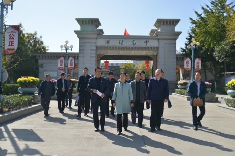 10月30日下午,河南省党建工作示范校检查组洪立新、杨宏涛、田野等评审专家一行三人,在开封市教育局党办主任姚少根的陪同下,对开封高中党建工作进行了全面细致的检查。首先开封高中校长顾伯宇、副校长乔国颖、马分产、李振华陪同评委检查组对校园进行现场调查,随后来到了行政办公楼三楼会议室。洪立新对这次的评审程序从四个方面做了介绍。开封高中校长顾伯宇代表学校对检查组各位专家评委的到来表示热烈欢迎,对开封高中的