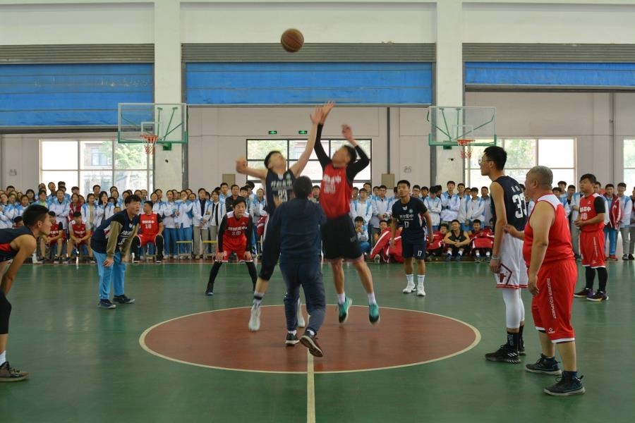为庆祝中华人民共和国成立70周年,增进师生之间情感,展现我校良好的课余文化,体现快乐运动的精神,开封高中西校区21届“庆祝中华人民共和国成立七十周年”师生篮球友谊赛于10月18日下午在校体育馆内隆重举行。 随着一声哨响,开封高中副校长尚嘉伟为本次友谊赛开球。高高抛起的篮球,点燃了本次篮球赛的激情。比赛伊始,由21届年级主任张辰贝带领的教师队很快进入了比赛状态,率先得分。他们凭着默契的配合和漂亮的长