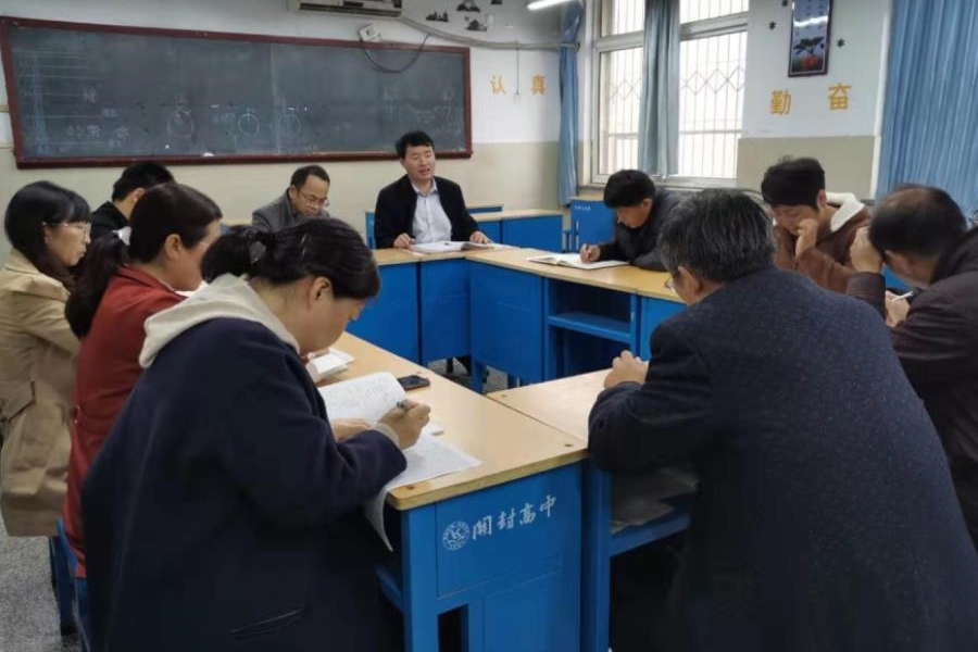 2019年10月21日星期一下午4:15开封高中20届召开了钱学森实验班教学工作会议,20届钱学森实验班10位教师全部参会,会议由年级主任白建涛主持,副校长乔国颖出席此次会议。会议围绕上周的测试成绩展开讨论,各学科教师依次通报本学科考试情况,认真总结本次考试存在问题并制定下一步的教学计划。按照学校要求,钱学森实验班每一次考试结束,各学科教师要手工阅卷,准确找到学生答题过程中存在的问题。教学部门对钱