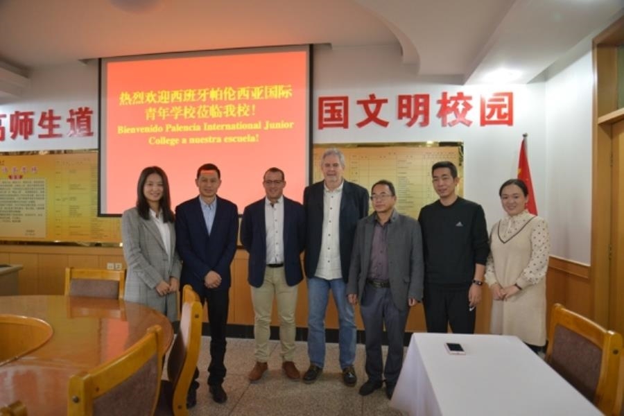 2019年10月22日,秋雨氤氲,菊城飘香。我校中西国际班合作方——西班牙帕伦西亚国际青年学校校长胡安卡洛斯一行,在河南省教育国际交流协会西班牙项目负责人曹荣铎的陪同下,赴我校进行了友好访问。副校长乔国颖,信息与资源管理处主任周金陈,党政办公室副主任李建威,郭玉红老师、韩舒老师参与了接待工作。上午10时许,在乔校长的带领下,大家来到校门口热情地迎接了西班牙来宾,随后,双方一起在会议室进行了友好会谈