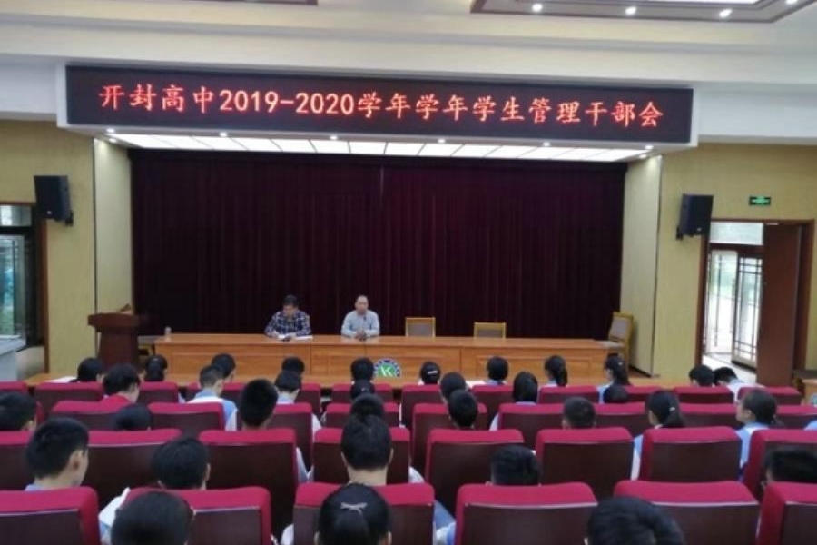 9月17日下午,开封高中召开2019—2020学年第一次学生干部管理会。开封高中副校长李振华、学生处副主任娄渊中、以及20、21、22届各班班长、卫生委员参加本次会议,会议由娄渊中副主任主持。会上,李校长对学生干部在班级管理中作出的贡献予以肯定,并对学生干部提出了新学期的新要求:一要能吃苦,二要扛起肩上的责任。希望大家团结协作、积极配合学校开展好各项学生管理工作。接下来,娄主任对室内外卫生、自行车