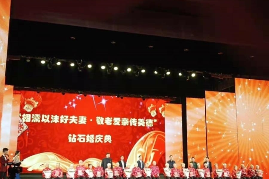 9月19日下午,由市委组织部、市委老干部局、市文明办联合举办的开封市离退休干部庆祝中华人民共和国成立70周年文艺汇演及钻石婚庆典活动在东京艺术中心举行,省委组织部副部长、省委老干部局局长段君海,市委常委、组织部部长刘汉征等相关领导出席活动。文艺汇演开始前,举行了钻石婚庆典活动。91岁高龄的开封高中退休教师张景奎和夫人肖君远作为教育系统代表来到现场,段君海、刘汉征等领导为包括张景奎老师夫妇在内的12