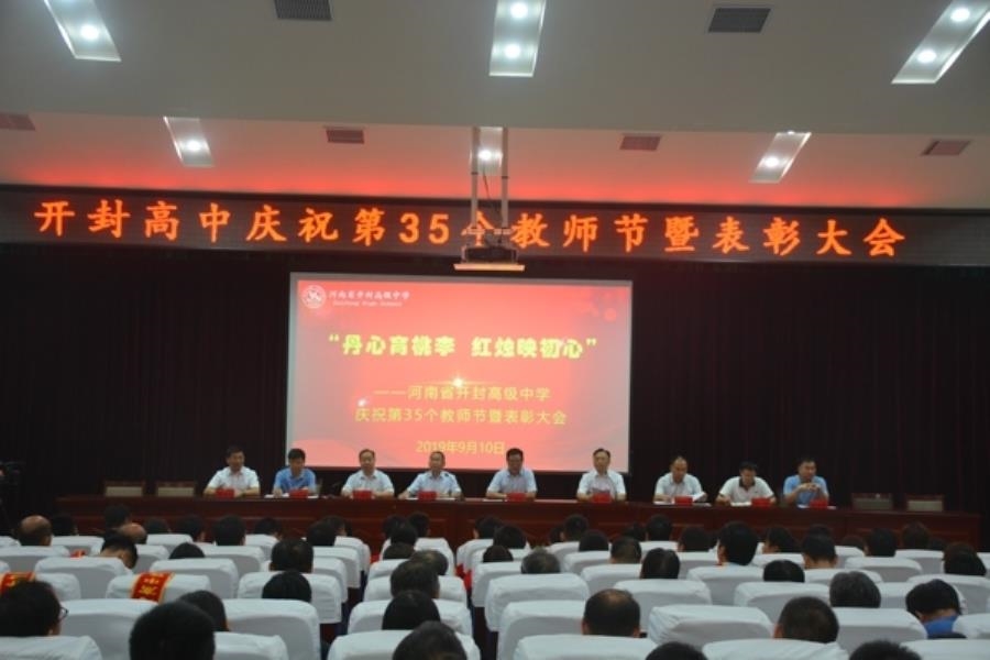 查看详情秋菊溢彩,桃李芬芳。在这收获成果又播种希望的美好季节,开封高中庆祝第35个教师节暨表彰大会9月10日在西校区隆重举行,55名先进个人和43名从事教育工作满30年的教职工受到表彰。教师节当天上午,部分获奖教师风采就以展板的形式摆放在东、西校区主干道两侧,整个校园洋溢着一片节日的喜庆气氛。下午三时,在副校长宋全会的主持下,庆祝教师节暨表彰大会在庄严的国歌中拉开序幕。河南省最美教师白冰、河南省学术技术带