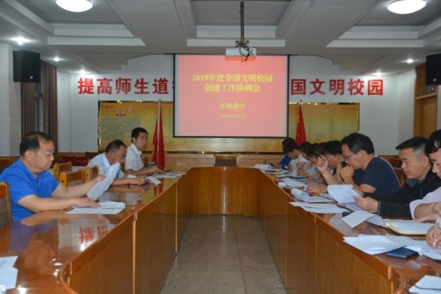 9月11日下午,开封高中在东校区办公楼三楼会议室,召开了2019年度全国文明校园创建工作专题会议。副校长乔国颖、刘培兵和学校各处室、年级段负责人参加会议,会议由党委办公室副主任李建威主持。李建威带领大家逐项学习《河南省中小学全国文明校园测评细则》,并就年度工作具体分工做了详细说明,要求各部门要结合测评细则认真总结上一学年全国文明校园创建工作,并制定新学年工作计划。刘培兵在讲话中指出,全国文明校园创