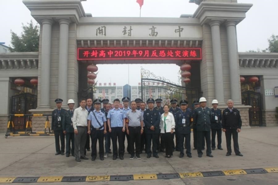 今年恰逢建国70周年,为了做好“防风险、迎大庆”,扎实推进反恐防暴工作,切实提高学校师生反恐防暴的意识和能力。9月12日下午,开封高中东校区进行了防恐防暴演练活动。开封市公安局禹王台分局治安队梁令军,政保大队副大队长尚会保,新门关派出所教导员张志强、民警孙倩和郭延伟应邀参加了演练,本次演练总指挥是主管副校长李振华。本次演练主要以反恐防暴模拟演练的形式进行。演练前,班主任在各班做了演练动员,让学生懂