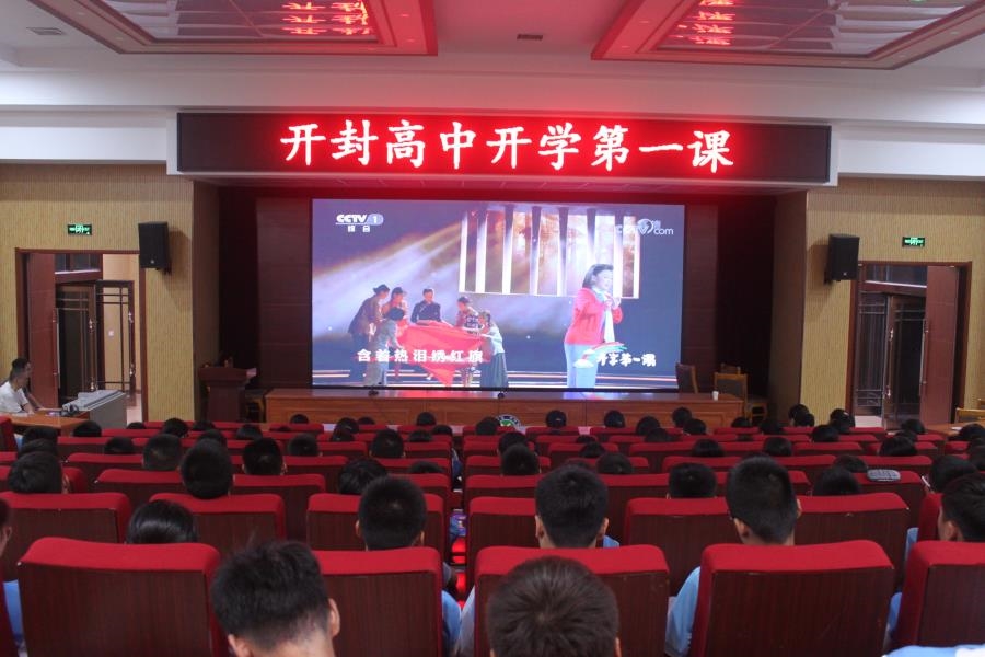 “信仰浇筑的五星红旗”“国旗插上珠峰之巅”“海上护航的中国红”“月球迎来五星红旗”“五星红旗伴我共同成长”……9月1日晚,由教育部和中央电视台联合推出的《开学第一课》继续与全国中小学生见面。晚上8点,开封高中东校区组织全校学生观看了2019年CCTV《开学第一课》。2019年《开学第一课》将主题定为“五星红旗,我为你自豪”。节目以“国旗下的演讲”为内容主线,选取70年来五星红旗飘扬的重要场合和精彩