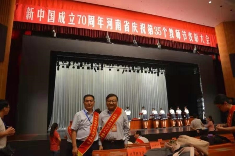 2019年9月7日上午在郑州市河南省人民会堂隆重举办“新中国成立70周年河南省第35个教师节表彰活动”。我校顾伯宇校长被评为河南省教育系统先进工作者,荣海洋老师被评为河南省模范教师,白冰老师被评为2019年度河南省最美教师。顾伯宇校长和白冰老师受邀参加此次表彰大会。9月7日上午,他们和其他受表彰教师一同受到省委书记王国生、省长陈润儿的接见,其间省委副书记、省委教育工作领导小组组长喻红秋出席会议并讲