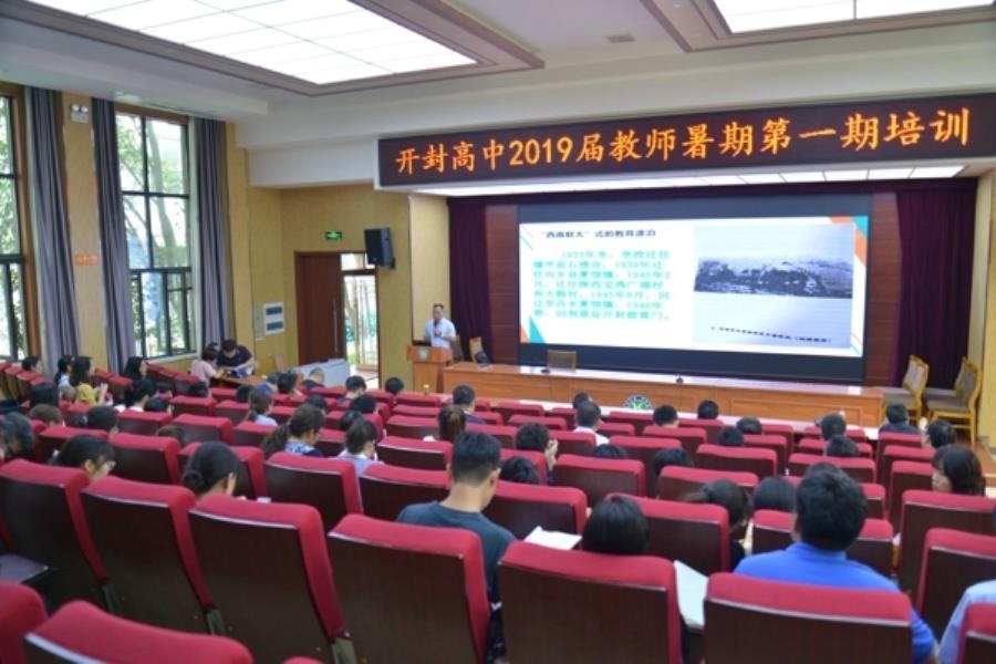 为促进我校教师专业化成长,更好地适应课堂改革,开封高中特于2019年6月17日周一至6月20日周四举行了2019届教师暑期第一期培训,此次培训的主题是“开封高中教师业务能力提升及课堂教学模式要求”。此次培训由信息与资源管理处主任周金陈全程主持负责,校长顾伯宇、副校长李振华、以及副校长乔国颖分别在不同时间为老师们做报告,2019届东、西两校区全体教师参与培训。培训期间,为全体教师分发《开封高中课堂教