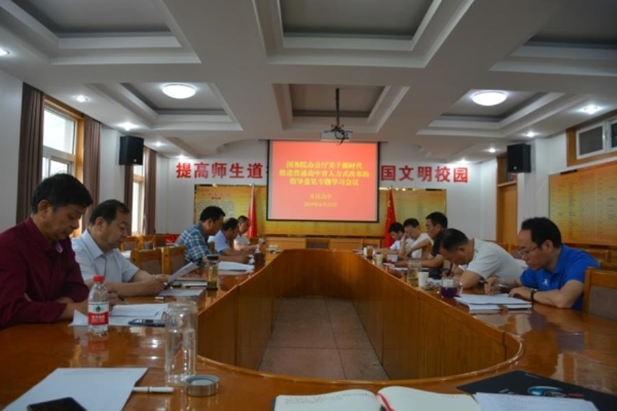 2019年6月21日上午,开封高中党委中心组就《关于新时代推进普通高中育人方式改革的指导意见》举行理论学习,党委书记耿振勇主持会议并讲话。会议开始,耿振勇强调了本次学习的重要性。他指出,6月19日,国务院办公厅发布了《关于新时代推进普通高中育人方式改革的指导意见》(以下简称《意见》),这是新世纪以来国务院办公厅出台的第一个关于推进普通高中教育改革的重要纲领性文件。普通高中教育是国民教育体系的重要组