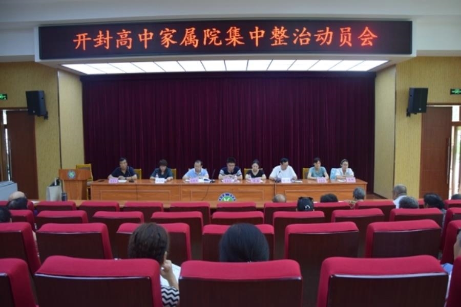 为了响应开封市政府对全市机关事业单位所建小区进行整治工作的号召,配合坚决打赢我市创文攻坚战的总体部署,6月21日下午,我校召开了全体家属院住户参加的开高家属院集中整治动员会。参加这次会议的有开封市禹王台区新门关办事处城管主任李金龙,新门关办事处工业科科长张蕾,演武厅社区党支部副书记王丽霞,演武厅社区副主任陈喜梅,演武厅社区创文主管高瑞,开封高中家属院集中整治领导小组组长、开封高中党委委员、副校长刘