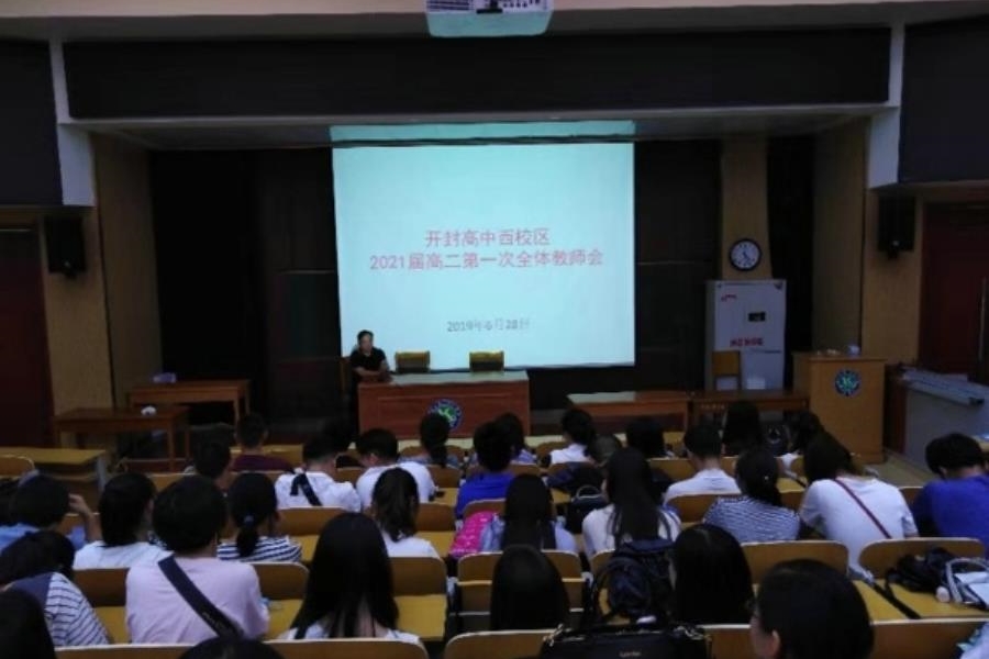查看详情葵榴菡萏花木繁,山水一程再启帆。6月28日下午,开封高中西校区2021届召开高二第一次全体教师会议,开封高中校长顾伯宇、副校长宋全会、校务委员王新国,2021届年级主任张辰贝、副主任何春生、王海动及全体教师参加了会议。年级主任张辰贝首先对新加入西校21届的八位教师表示欢迎,希望他们尽快融入到新的年级团队。之后,张辰贝主任总结了过去一年的工作,他指出,西校区2021届是一个年轻富有朝气、执行力强的团