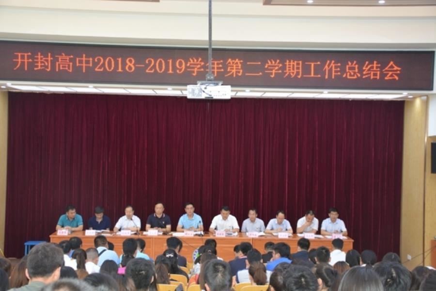查看详情2019年6月30日上午9时30分,开封高中在东校区西报告厅召开了2018—2019学年工作总结会,会议由开封高中副校长宋全会同志主持,校长顾伯宇发表讲话。顾伯宇在讲话中对本学期各项工作做出总结。他表示,一个学期以来,在市委、市政府、市教体局的坚强领导下,全体教职工精诚团结,众志成城,尤其是在2019届全体师生的共同努力下,2019年高考继续取得辉煌成绩,向全市人民交上了满意的答卷。全体教师加强学