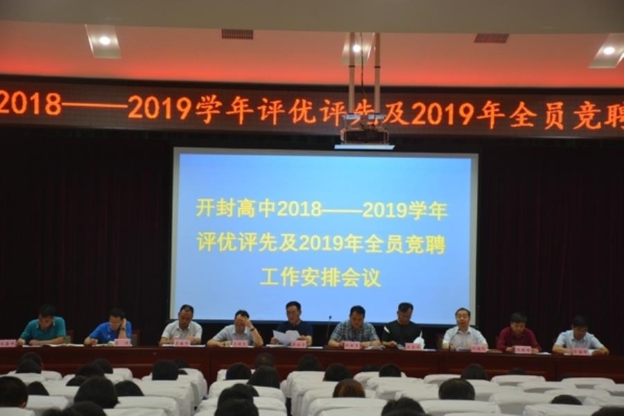 6月20日下午3时,开封高中2018—2019学年评先评优及2019年全员竞聘工作安排会议在西校区报告厅举行,东、西校区全体教职工参加会议,会议由副校长宋全会主持。会上,副校长刘培兵宣读了《关于评选2018—2019学年度优秀教师和优秀教育工作者的通知》和《开封高中2019年全员竞聘工作安排》。随后进行了2022届新高一年级正、副主任竞聘演讲。党委书记耿振勇简要梳理总结了2019学年上半年工作情况