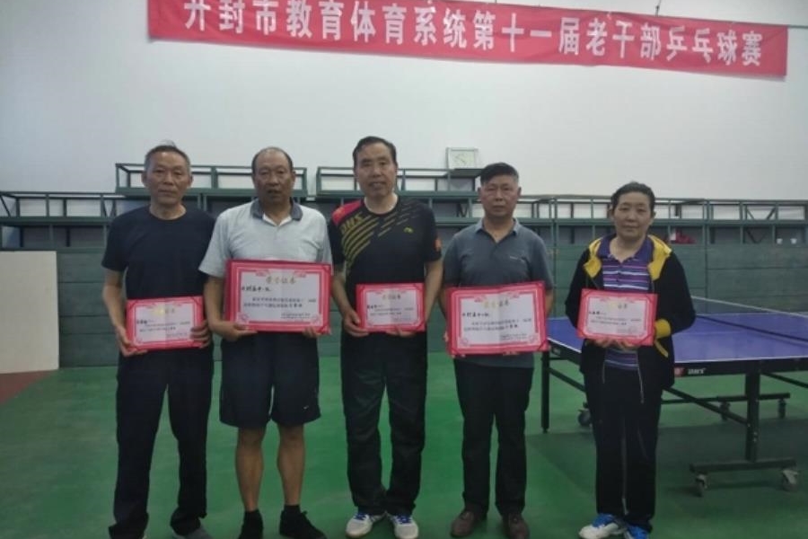 为了进一步推动全民健身运动的广泛发展,活跃离退休教职工的文化生活,营造积极向上、健康文明、团结合作的和谐氛围,开封市教育体育局下发了举办开封市教育系统第十一届离退休教师乒乓球比赛的通知。比赛于2019年5月15--17日在开封市中小学校外活动中心举行,我校退休教师李庆东、韩建设、王亚丽、杨玉随、王若康、齐华玮参加此项比赛。比赛中,我校教师个个精神焕发,斗志昂扬,身手敏捷,奋勇拼搏,精彩的扣杀将比赛