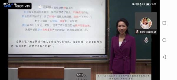 2022年10月28日至30日,“第十一届全国高中语文教师教学基本功大赛暨教学观摩研讨会”以线上直播的形式顺利召开。本次观摩会通过腾讯会议面向全国语文教师现场直播,与全国高中语文教师云端聚会。我校语文组教师袁泉代表河南省参加了此次比赛,并荣获全国高中语文教师教学基本功大赛一等奖。 近年来,袁泉老师参加市级优质课比赛、省级优质课比赛,均取得一等奖的好成绩。在2022年高考中,袁泉老师所教学生分别获得