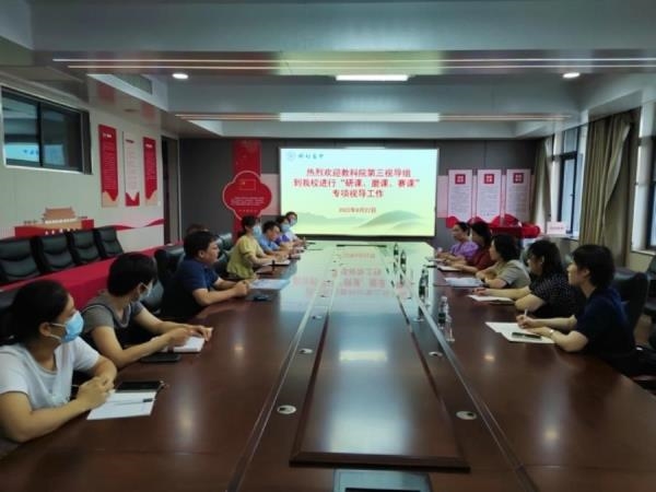 8月22日上午,开封市教育科学研究院副院长杨好勤等一行5人来到开封市高中进行“研课、磨课、赛课”专项视导工作。开封高中校务委员王新国、教务处主任周金陈和开封高中各学科备课组长参加了此次会议。首先,周金陈将学校落实“研课、磨课、赛课”活动的情况进行了详细的汇报。开封高中结合学校实际,认真学习和传达了上级要求,各教研组精心准备,认真研讨,严格按照相关要求完成了各项活动。部分教研组长和参会教师对活动过程