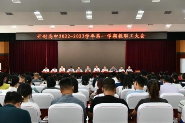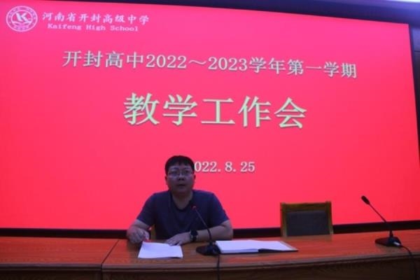 为更好地贯彻新学期学校工作精神,落实学校以教育教学质量求生存、图发展的改革目标。2022年8月25日和8月26日开封高中教务处组织全体教师召开了2022-2023学年第一学期各级各类教学工作会。8月25日上午,教务组织全体教研组长和备课组长在东报告厅召开会议,学校主管教学领导参加会议。会上,教务处主任周金陈带领全体教研组长和备课组长认真学习了宋校长在新学期全体教职工大会上的讲话精神,并对新学期工作