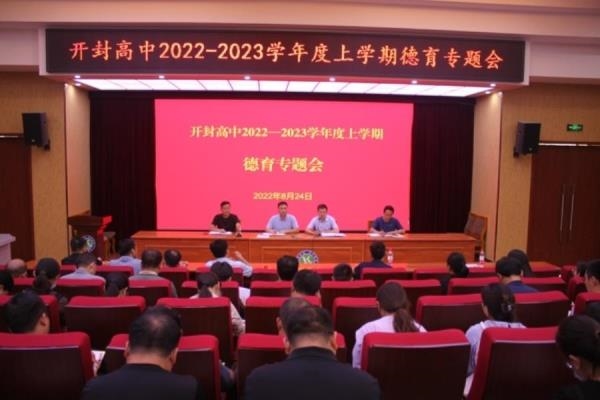 为更好地贯彻落实新学年学校工作报告,落实学校德育管理思想,加强班主任队伍建设,提升班主任管理水平和工作实效性,2022年8月24日下午,在开封高中报告厅召开了2022-2023学年度上学期德育工作专题会。开封高中副校长尚嘉伟,学生处主任苗森,副主任张辰贝、吴杰出席会议,年级主任和全体班主任参加会议。会议由张辰贝主持。首先,苗森对上一学年的工作做了简单地总结,并对新学期德育工作做了详细的安排和部署。
