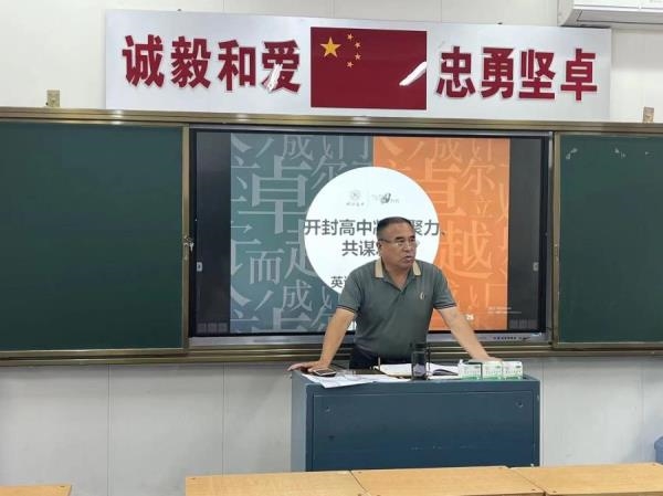 8月26日上午8点半,在开封高中英语组教研组长焦玉江老师的主持下,开封高中东校区英语组在东前教学楼一楼教室举办了开封高中“凝心聚力,共谋发展”专业研讨会。学生处副主任吴杰莅临会议指导工作。首先,英语教研组长焦玉江老师传达了昨日开展的教研组长备课组长会议精神。教师要做到,立德树人,为人师表,正直,充满正能量,积极向上,多看书,多学习,多做题。其次,焦玉江老师带领大家温习英语学科核心素养:语言能力,文