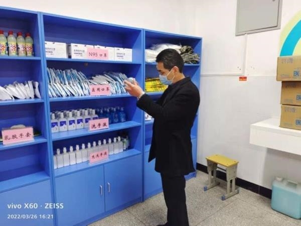 为切实做好疫情防控工作,3月26日下午,开封市保健站站长张连芳一行3人莅临我校督导检查防疫物资储备情况,学校学生处主任马珂全程陪同检查。督导组认真查看了我校口罩、消毒液、洗手液、隔离服和医用酒精等防疫物资的储备情况及有效日期,并仔细询问了我校防疫物资领取程序,翻阅了领取记录,对我校物资储备工作给予了高度肯定,并强调疫情就是命令、责任重于泰山,一定要细而又细、实而又实的做好疫情防控物资储备工作,及时