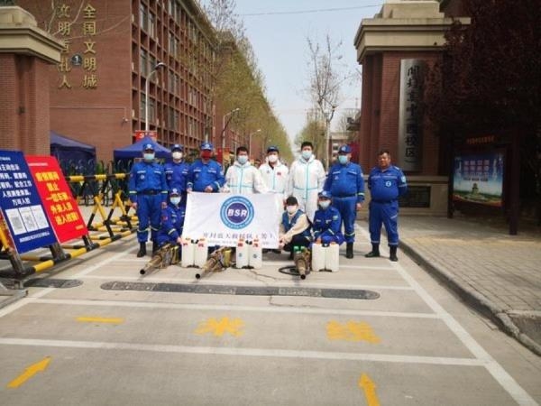 4月4日中午12:00,开封市“蓝天救援队”一行13人在学生处副主任高彦磊的配合下,为我校校园开展防疫消杀。救援队队员们一下车就投入到防疫消毒工作中,他们带着专业的消毒设备,身着防护服,熟练的分工协作、配置消毒药水,认真对教室、教学楼楼道、学生宿舍、卫生间等区域进行全面防疫消毒,消毒持续2个小时,消毒面积达3万平方米。开封高中严格配合开封市及示范区防疫工作,制定“清明”假期疫情防控工作方案,将师生