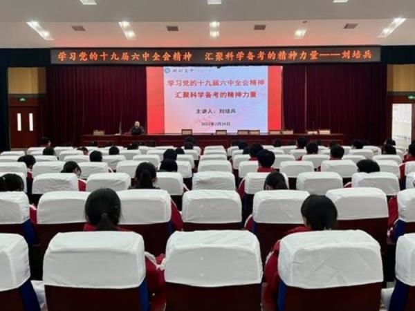 2月24日,开封高中党委副书记、副校长刘培兵为学校第五期青年学生业余党校学员做了题为《学党的十九大精神 汇聚科学备考力量》的专题讲座。刘培兵向学员们讲解了党的十九届六中全会的重大意义、重要成果及核心要义,从十九届六中全会的精神延伸到高三的科学备考,要求同学们不忘历史,始终牢记没有共产党就没有新中国,党的根基在人民,血脉在人民,力量在人民。努力学习科学知识,学会解决根本问题,用党史中所蕴含的深厚内