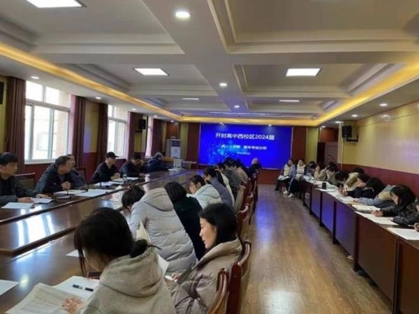 根据学校整体工作部署,为把脉教情问诊学情,2月25日下午,开封高中西校区2024届在行政楼三楼会议室召开高一上学期期末考试成绩分析会。开封高中副校长刘培兵、张志强、西校区教务处副主任张晋波出席会议,24届年级主任高龙、副主任王彦彬及全体教师参加会议。王彦彬主持。高龙通过翔实数据作多维度成绩分析:以柱状图、天梯图、表格等形式生动立体地呈现各科试卷难度系数和区分度、各科成绩分布、各班各科整体