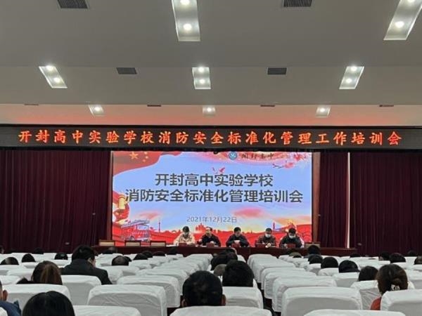 为了加强学校的消防安全管理工作,杜绝火灾事故的发生。12月23日下午,开封高中实验学校在报告厅开展了消防安全标准化管理培训会。开封高中校务委员李沛、总务处主任王双虎、学生处主任马珂、副主任王文昊及学校餐厅、寝室、保洁、保安及全体行政工作人员参加了本次培训会。会议由开封高中党委副书记、副校长刘培兵主持。培训会上,大家共同观看了火灾案例警示片,直观的让参会人员懂得了预防火灾的重要性,提醒教职工要不断提
