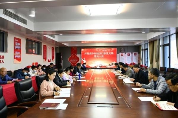 为加强理论学习,统一思想,落实学校工作理念,2021年11月18日下午,开封高中东校区理科党支部在行政楼五楼会议室召开会议,东校区理科支部全体党员参加了会议,校党委副书记,校长宋全会出席会议。会议由支部书记毛广文主持。党支部组织委员张伟善首先带领大家学习了《十九届六中全会公报要点》;党支部宣传委员董文鹏带领大家学习了河南省十一次党代会有关教育的内容。校党委副书记、校长宋全会代表学校党委对东校区理科