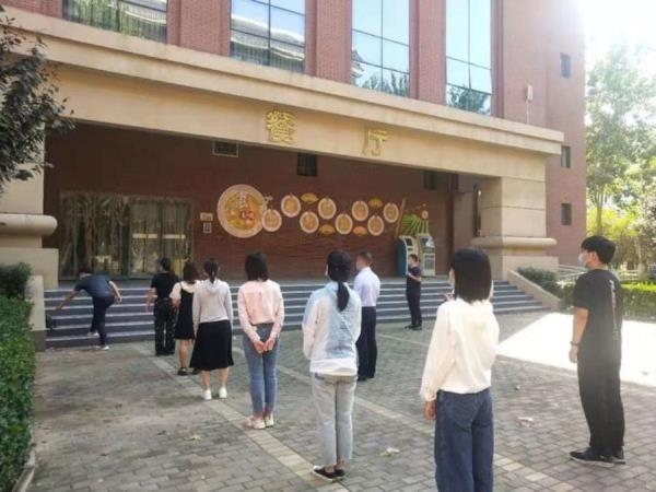 为全面贯彻落实开封市教育体育局《关于切实做好全市教育体育系统秋季复工复学安全风险防控工作的通知》,筑牢疫情防线,保障师生健康,开封高中开展了2021秋季复学防疫演练及复学疫情防控教育第一课等活动。参与演练的教职工严格按照制定的演练预案内容,从入校检测、就餐分坐、进入课堂不同环节出发,恪守复学服务机制,扎实把控各环节情况。每位学生进校前需要配合门卫测量体温,体温正常方可进校。在餐厅就餐也要保证间隔,