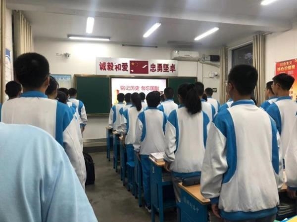 今天是“九一八”事变90周年纪念日,为进一步弘扬爱国主义精神,激发学生们的爱国热情。9月18日我校开展了一系列爱国主义教育活动。学校电子屏循环播放纪念标语,校广播站利用午饭和晚饭播音时间,向全校师生播放了特别制作的节目。晚自习前的修养课,学校历史组教师刘园园为全校师生作了一场题为《勿忘国耻 吾辈自强》的专题讲话。她带领大家共同回顾了祖国饱受日本侵略者欺凌的那段苦难历史,让同学们深刻认识到只有提
