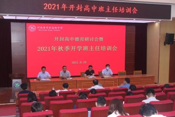 为提升班主任队伍整体素质,开封高中学生处计划开展为期三天的德育研讨会暨班主任培训活动,2021年8月1日上午,在报告厅召开了第一场培训活动,校长顾伯宇、副校长乔国颖、李振华,校务委员王新国、学生处主任苗森、副主任张辰贝出席活动,全体高一班主任、部分高二高三班主任和30岁以下青年教师参加了培训。