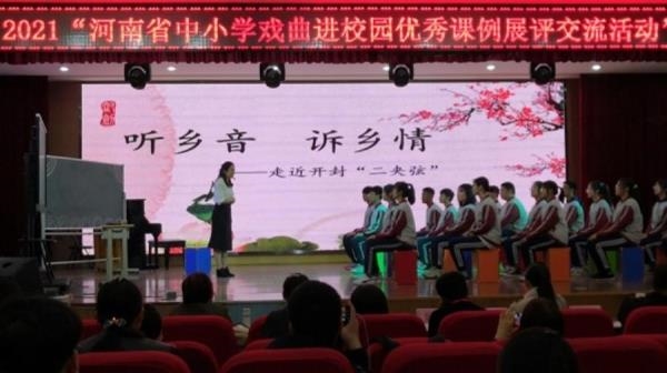 2021年4月21日-4月23日,“河南省中学戏曲进校园优秀课例展评交流活动”在郑州举行。本次交流活动是河南省教研室通过初评、复评的206节课例中,优选出的30节中学优秀戏曲课例,其中,开封高中马珂老师的课例《听乡音 诉乡情——走近开封“二夹弦”》入选,并代表开封市参加了展评交流活动。交流活动期间,专家评委对现场课逐一进行了详细的点评,并高度称赞马珂老师的课例,充分发挥学生的主体作用,引导学生体会