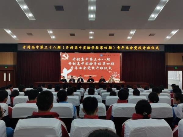3月23日下午,开封高中第三十八期(开封高中实验学校第四期)青年学生业余党校开班仪式在报告厅举行。高三年级127名党校学员及高一、高二年级各班班长、团支书参加了开班仪式。开封高中党委书记耿振勇,党委委员、副校长宋全会、尚嘉伟,校务委员李沛,校学生支部书记、学生处主任、校团委书记苗森出席。仪式由综合办副主任马珂主持。仪式在嘹亮的国歌声中拉开序幕。苗森向大家介绍了《开封高中青年学生业余党校的发展状况》