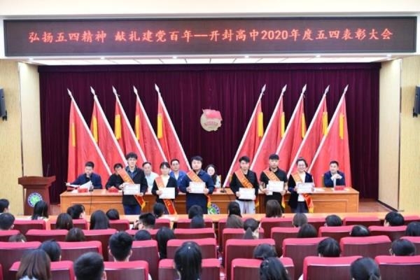 5月4日下午16:30分,开封高中“弘扬五四精神 献礼建党百年”五四表彰大会在东报告厅举行。我校30岁以内青年教师到场参会,各学生支部团支书、组织委员,各班班长悉数参会。现场与会的领导还有团市委副书记孙楠、开封高中党委书记耿振勇,校长顾伯宇,副校长乔国颖、宋全会、马分产、李振华、尚嘉伟。大会由团委书记苗森主持。