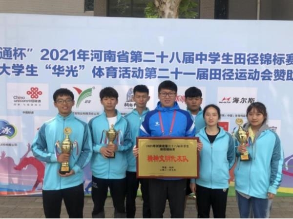 2021年4月30日-5月5日河南省第二十八届中学生田径运动会在河南省牧业经济学院举行。开封市代表队获得团体总分第六名,并荣获精神文明代表队称号。本届田径锦标赛,开封市教育体育局经过严格选拔,我校九名学生进入比赛阵容,参加100米、400米、铅球、跳高等多个项目的比拼。经过4天激烈角逐,我校健儿顽强拼搏,奋勇争先,为开封市代表队争得荣誉,为校争光。