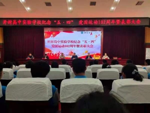 4月30日下午,开封高中实验学校纪念“五四”爱国运动102周年暨表彰大会在报告厅举行,开封高中党委书记耿振勇,副校长宋全会、尚嘉伟,校务委员李沛,综合办主任张志强,副主任王文昊及各班团支书,受表彰团干及团员代表参加。表彰大会由综合办副主任马珂主持。大会在庄严肃穆的《中华人民共和国国歌》和《共青团团歌》声中拉开帷幕。尚嘉伟宣读了《开封高中实验学校2020-2021学年度“五四”表彰决定》,学校对获得