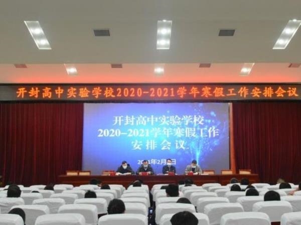 查看详情为更好地总结过去,展望未来,2021年2月5日下午,开封高中全体教职工在东校区报告厅举行开封高中2020—2021学年寒假工作会,本次会议由副校长马分产主持,校长顾伯宇、副校长乔国颖出席会议并讲话。