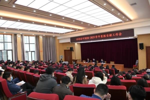 2021年2月5日下午,开封高中西校区2020-2021学年寒假工作安排会议在报告厅举行,全校教职工参加了会议,会议由副校长尚嘉伟主持,校党委书记耿振勇出席会议并讲话。会上,校务委员李沛宣读了我校《关于2020-2021学年寒假工作的安排意见》文件,对寒假期间的工作做出了具体的安排部署。宣读完毕后,李沛就文件中提到的放假时间及有关注意事项进行了再次强调,要求全体教职工严格遵守上级关于禁止寒假期间教
