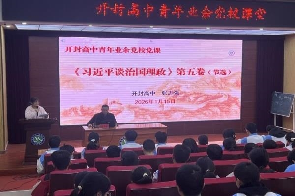 1月15日下午,开封高中东校区青年业余党校第44期党课在东报告厅顺利举办。我校党委委员、副校长张志强以《习近平谈治国理政》第五卷为主题,为全体青年学员带来一堂兼具理论厚度、实践温度与思想深度的思想盛宴。授课中,张志强首先深刻阐释了《习近平谈治国理政》第五卷作为党的创新理论最新成果的权威价值,细致解读了著作编写的匠心巧思与翻译过程中对中国话语精准传递的严谨追求。他带领学员系统梳理著作核心内容,清晰勾