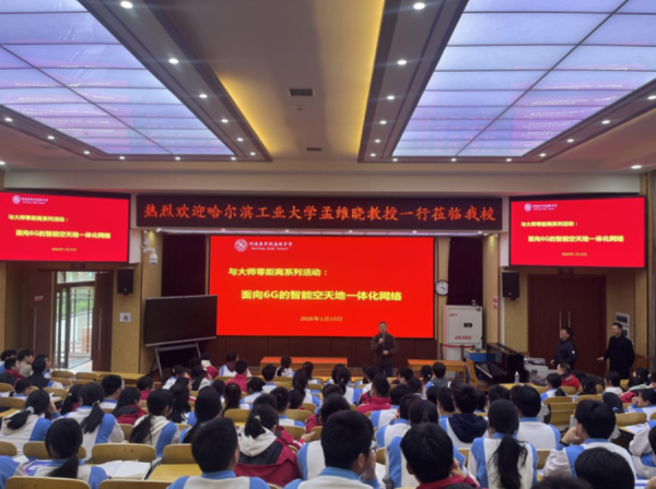 2026 年 1 月 15 日,哈尔滨工业大学孟维晓教授一行走进开封高中,为我校师生及家长带来了一场兼具前沿性与实用性的学术盛宴,并同步开展招生宣讲活动。开封高中副校长张志强、教务处主任周金陈、招生办副主任周江松热情接待了来访嘉宾。下午四时,学校西报告厅座无虚席,孟维晓教授以《面向 6G 的智能空天地一体化网络》为题,开启精彩科学讲座。孟教授系哈工大电子与信息工程学院博士生导师,成功入选斯坦福大学
