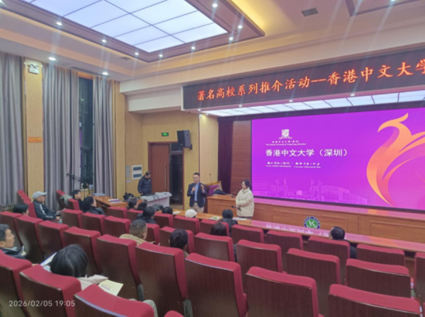为加强家校联动,助力高三学子科学规划升学路径,2月5号,我校“著名高校系列推介活动”迎来香港中文大学(深圳)招生专场,河南招生组副组长周阳老师一行到访我校,校督导室主任苏新明、招生办副主任周江松代表学校热情接待并参与交流。活动伊始,我校2023届优秀毕业生、现就读于香港中文大学(深圳)的周雨馨同学,结合自身在校学习与生活体验,向家长们分享了选择港中深的初心、校园多元文化氛围以及国际化教育平台带来的