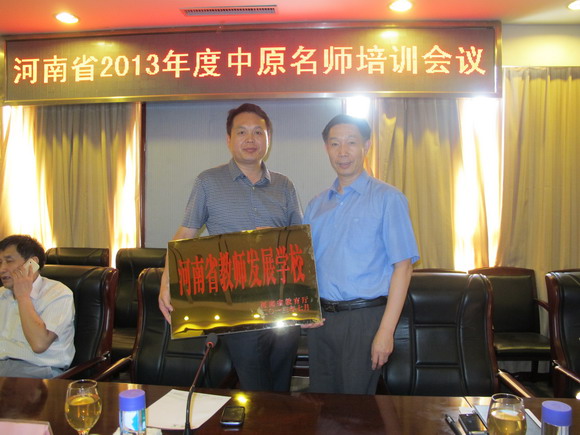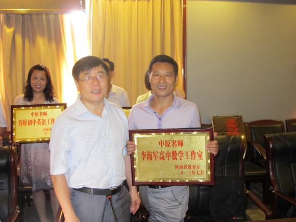 2013年8月4日至7日,开封高中党委书记、校长耿振勇,数学教师李海军到南阳西峡县参加“河南省2013年度中原名师会议”,会议聆听了专家报告,耿振勇校长代表开封高中接受省教育厅授予的“河南省教师发展学校”的荣誉称号,李海军老师接受“中原名师李海军高中数学工作室”的牌匾。耿振勇校长与省教育厅领导、省内名校的校长进行了充分的交流。