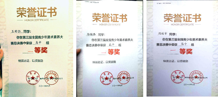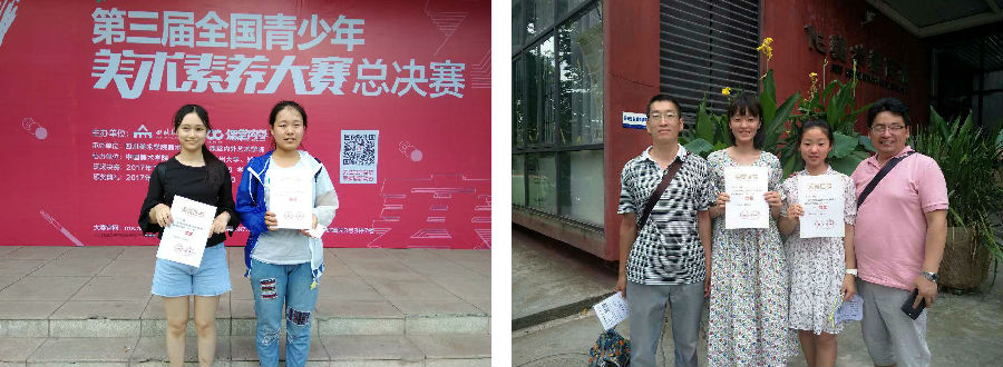 2017年7月9日,我校8名学生在家长和美术老师的陪同下,来到四川美术学院参加全国的总决赛。重庆是一座美丽的山城,四川美术学院的虎溪校区更是分外古朴、秀丽。当天来自全国多个省市近600名选手同场竞技,场面蔚为壮观。比赛形式是命题创作+美术素养知识,全面考察了选手的综合美术素养。我校学生凭借精湛的技艺和扎实的美术素养知识斩获佳绩: