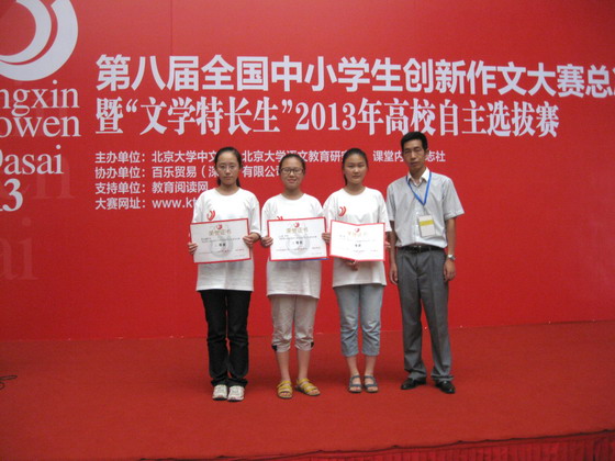 2013年8月2日—3日,第八届全国小中学生创新作文大赛全国总决赛在北京大学举行,我校选手获得优异成绩。