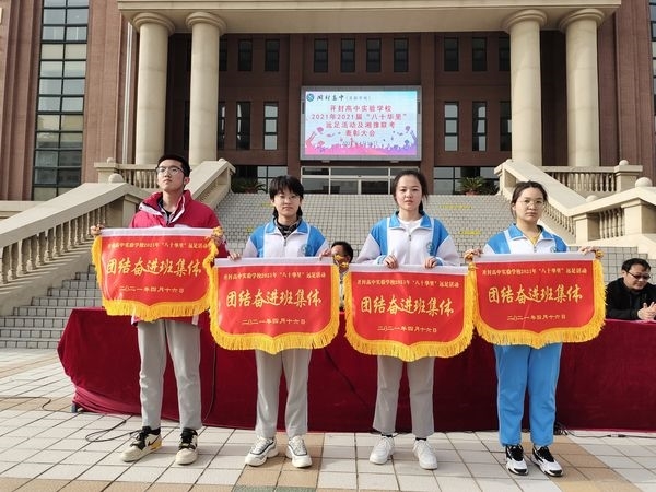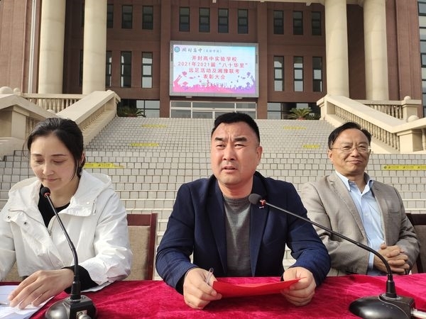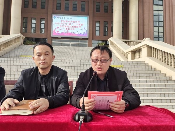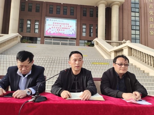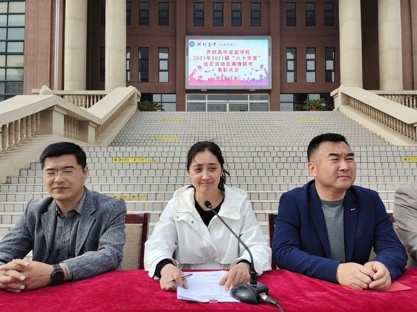 八十华里的远足,是一次身心的考验;五十多天的征战,是一场梦想的检验。在总结中沉淀所思,在表彰中鼓舞斗志,在前进中践行所愿,为挖掘活动中的多重教育内涵,4月16日下午,开封高中2021届召开远足和联考总结表彰大会。开封高中党委书记耿振勇,副校长宋全会、尚嘉伟,校务委员李沛,2021届年级主任何春生,副主任高龙、张信乾出席大会并在主席台就坐,2021届全体学生、教师及家长代表参加大会,综合办副主任马珂主持。