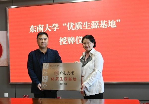 东南大学是享誉海内外的著名高等学府,学校是国家教育部直属并与江苏省共建的全国重点大学,是国家“985工程”和“211工程”重点建设大学之一。今天在学校四楼会议室,两校领导进行了亲切的交流,各自介绍了学校的历史和发展。吴映红书记一行专程来到我校进行“优质生源基地”授牌,这是对我校高考成绩的赞誉。吴书记感谢开封高中为东南大学输送了大批的优秀学子,对学校高质量的教育教学水平给予了高度的肯定。东南大学“优质生源基地”的授牌,将在贵我两校之间建立一座新的桥梁,将会推动两校共同发展,共创辉煌。